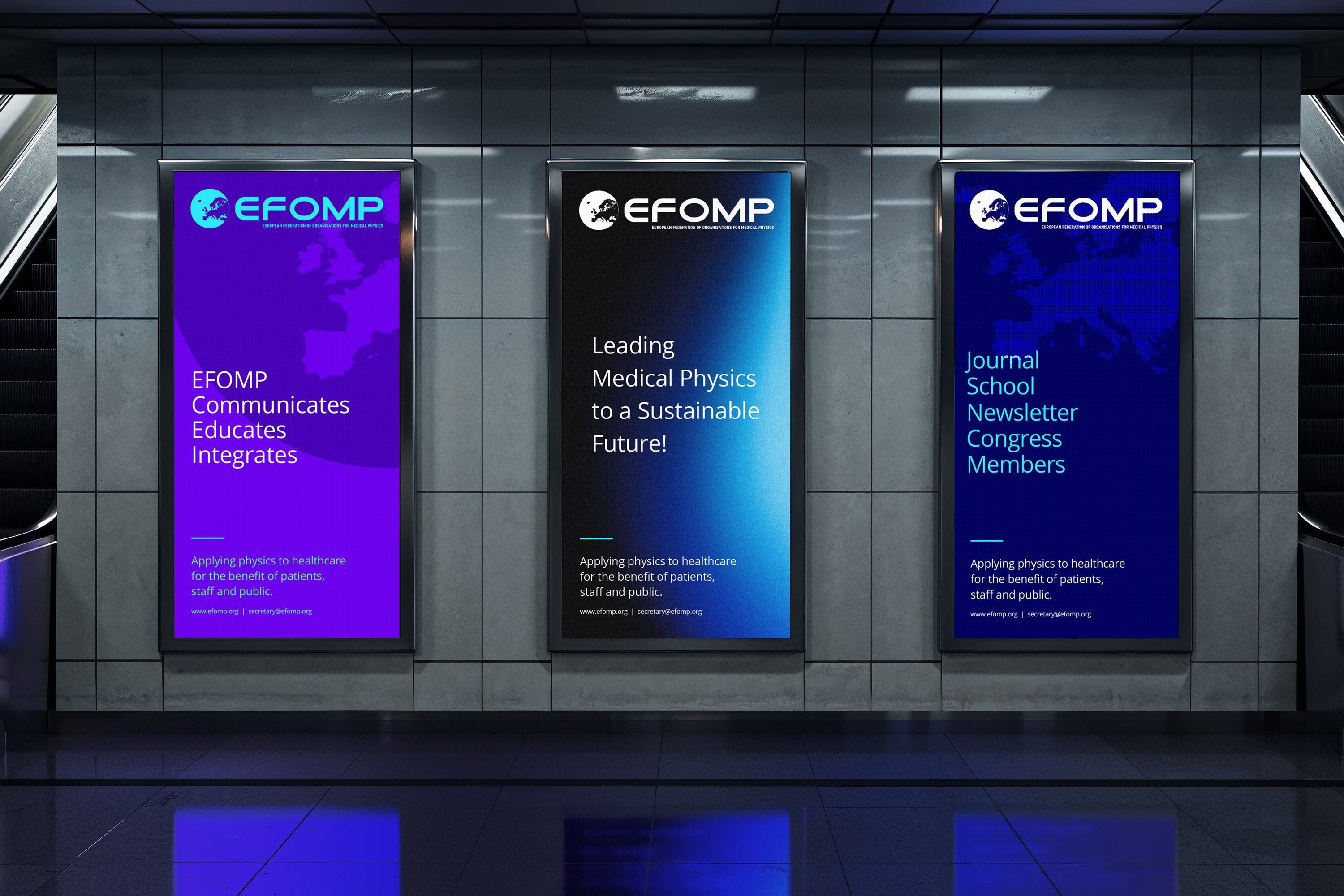 EFOMP promotional billboards in Metro stations across Europe.